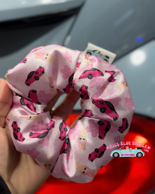 Pink on pink Miata satin scrunchie