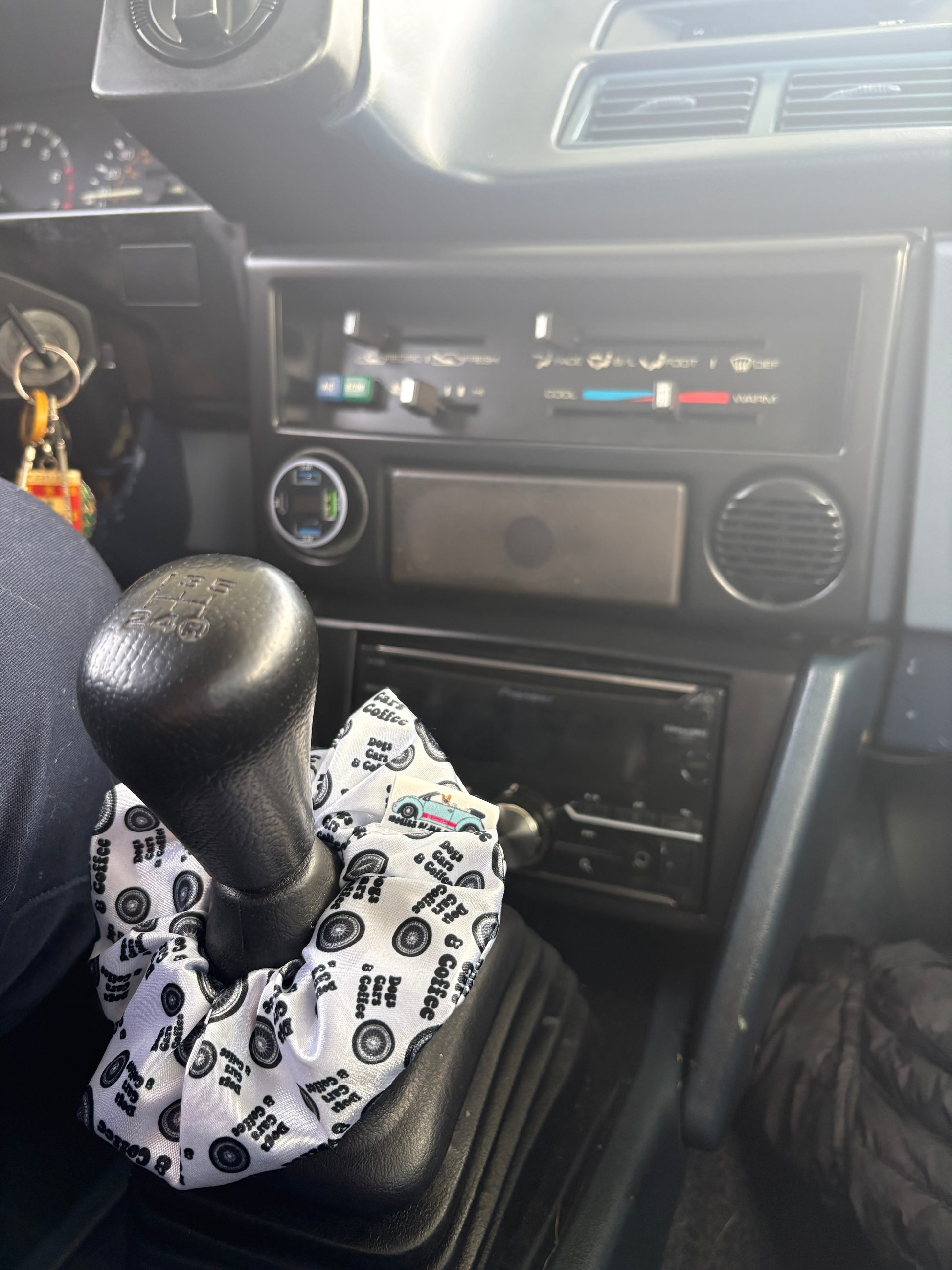 Dogs, cars, and coffee satin scrunchie