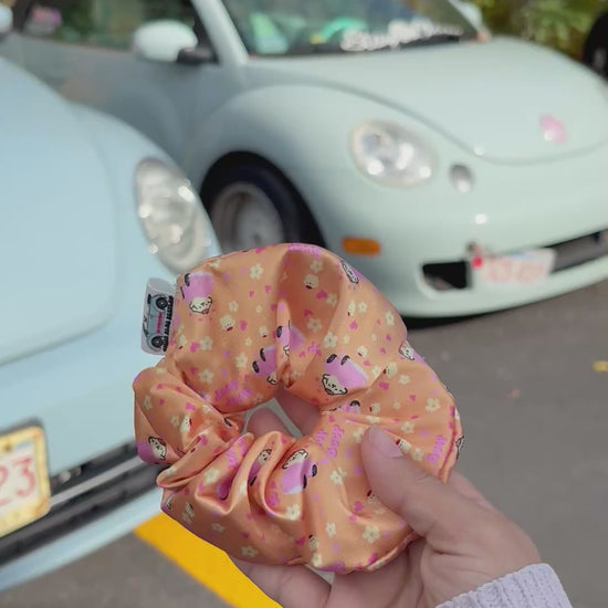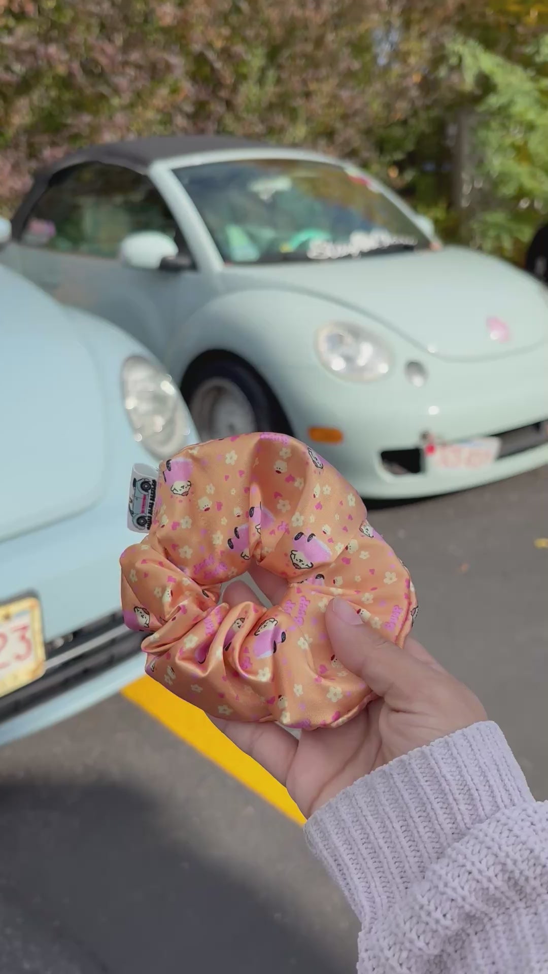 Designed and sew by us! Unique to our shop! Soft silky Satin scrunchie! fabric printed in the USA by a woman owned small business! *hot wheel not included*